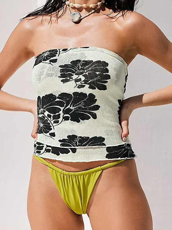 Random Floral Print Peplum Bandeau Top