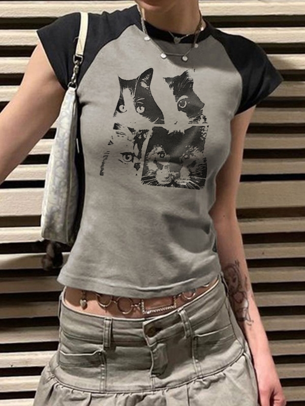 Vintage Print Raglan Oversized Short Sleeve Tee