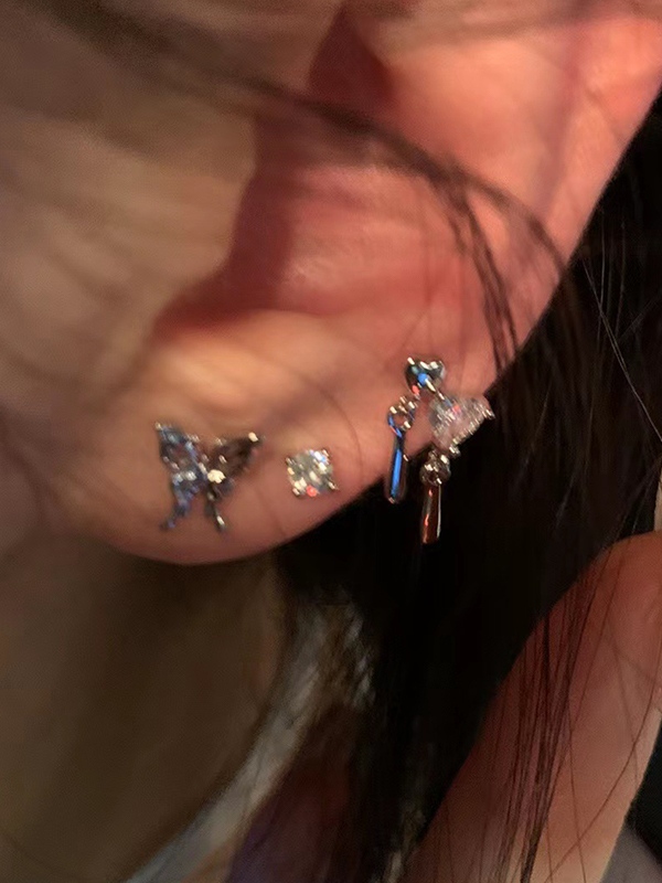6pcs Shiny Butterfly Heart Diamond Stud Earring
