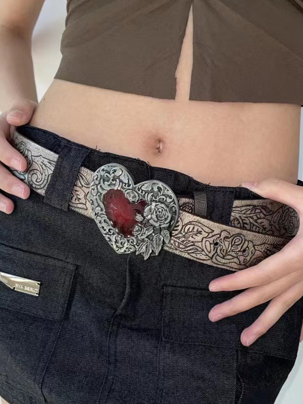 Gothic Embossed Engraved Heart Buckle Belt