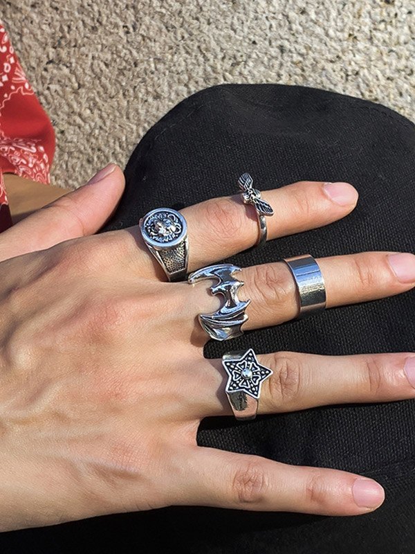 Men’s 5pcs Punk Silver Ring