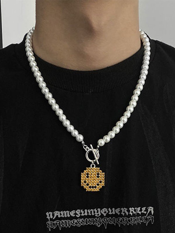 Men’s Punk Faux Pearl Stud Splice Necklace