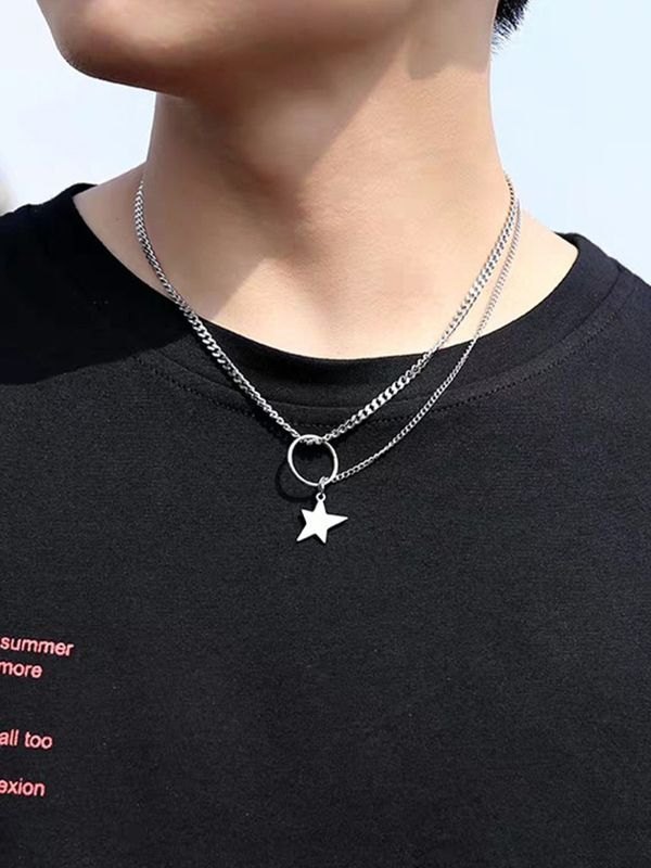 Men’s Star Pendant Layered Chain Necklace