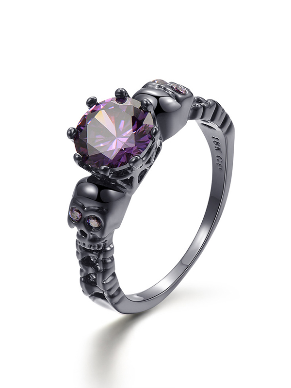 Punk Skull Purple Zircon Ring