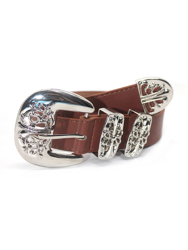 Engraved Cutout Cross Buckle Belt