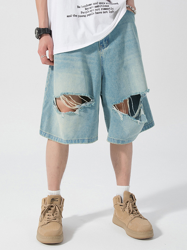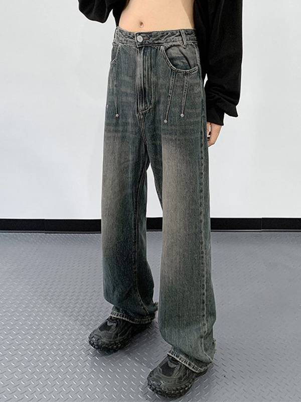 Raw Edge Washed Wide Legs Loose Jeans
