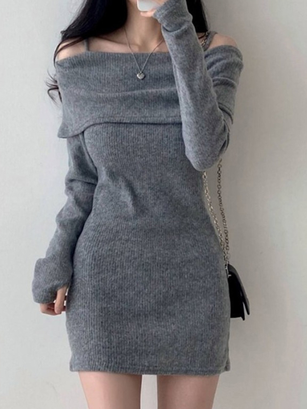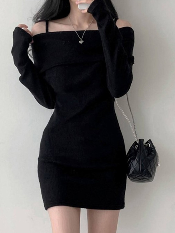 Sexy Off-Shoulder Ribbed Waist Mini Dresses