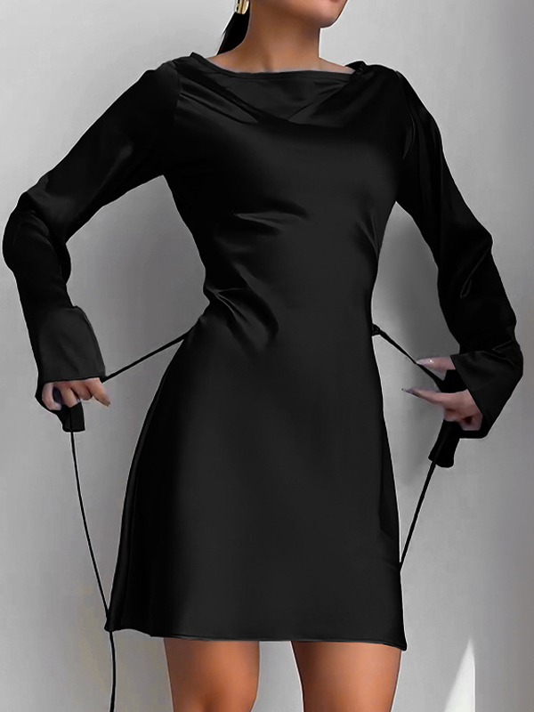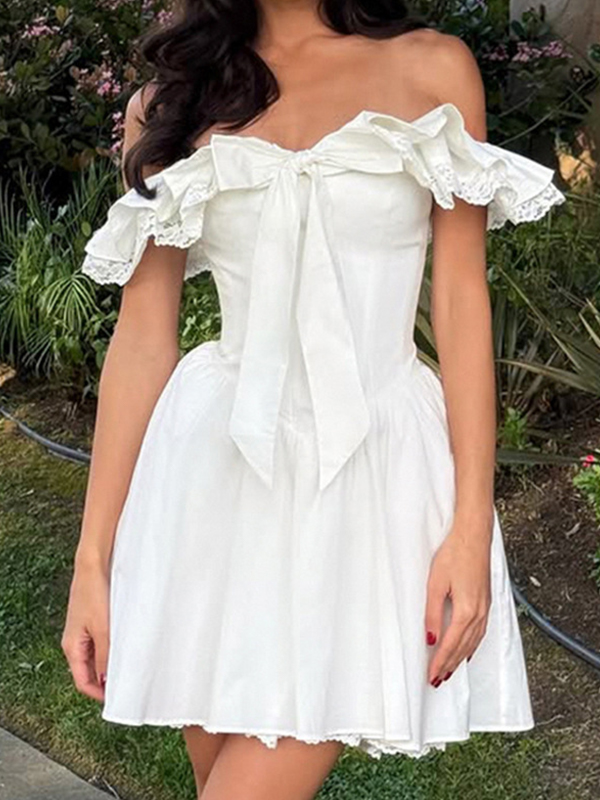 Solid Color Square Neck Sexy Bow Mini Dresses