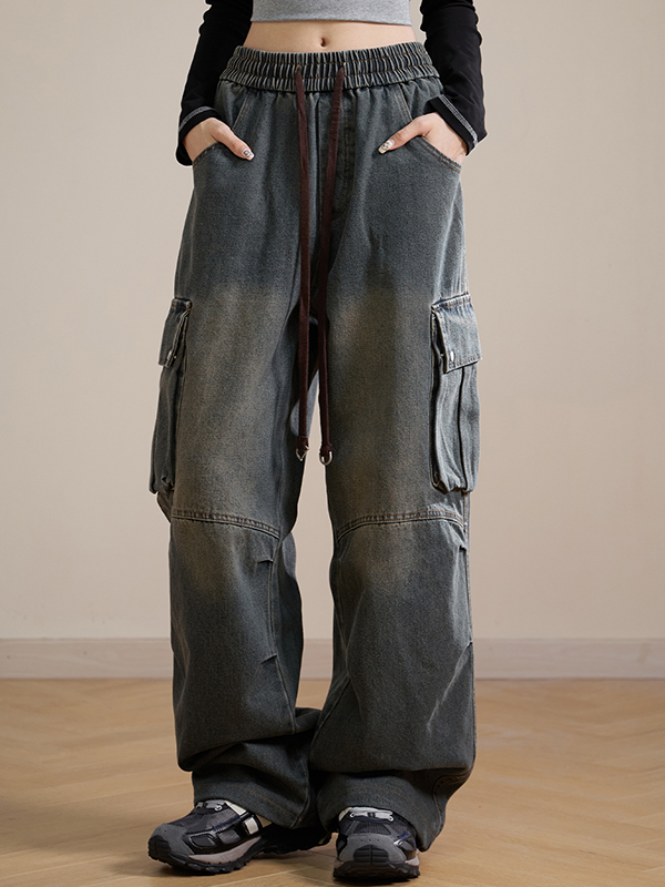 Loose straight design Cargo Jeans