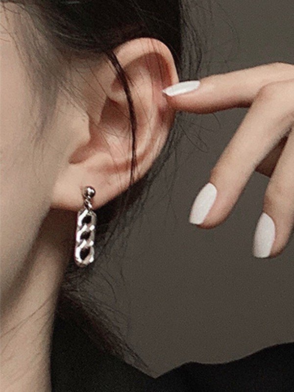 Silver Link Chain Design Earrings