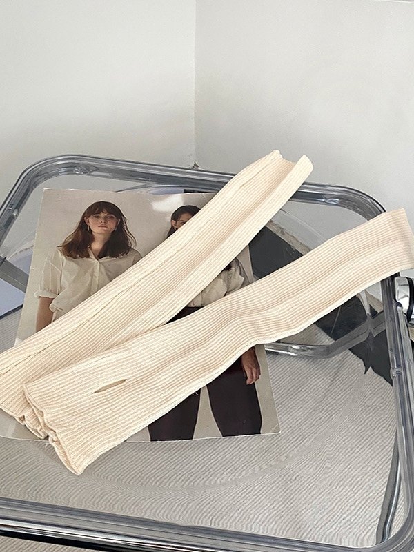 Ribbed Knit Thumbhole Arm Warmer Gloves