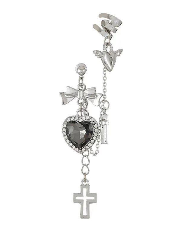 Punk Cross Heart Bow Charm Chain Cuff Earring