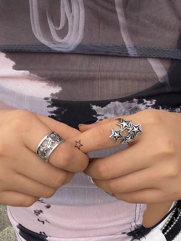 Vintage Star Pattern Silver Ring