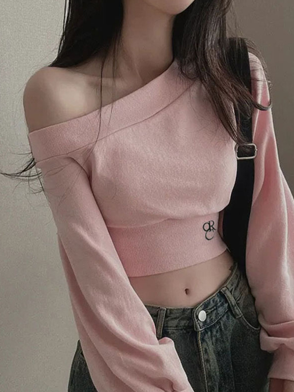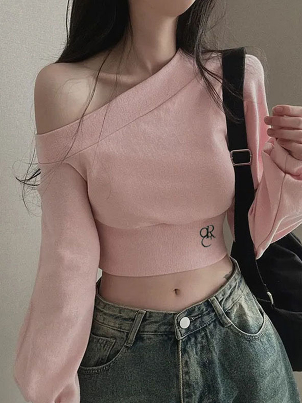 Designed Slanted Shoulders Sexy Waist Sweaters