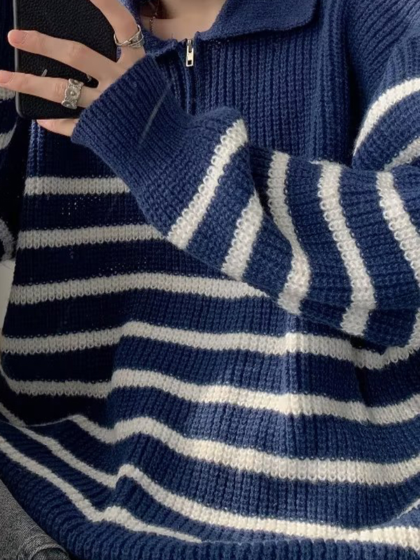 Be the first to review “Men’s Striped Lapel Neck Half Zip Sweater”