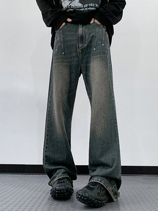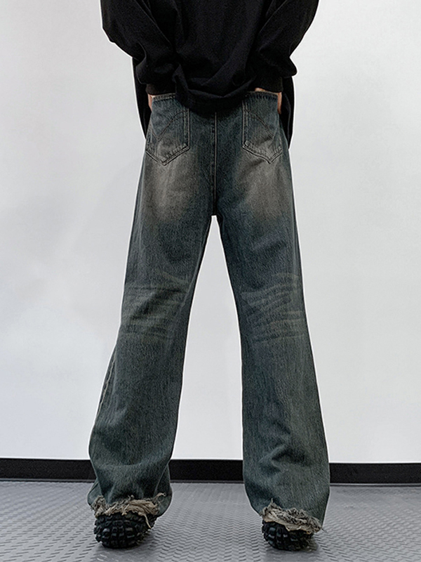 Men’s Distressed Vintage Blue Ripped Loose Jeans