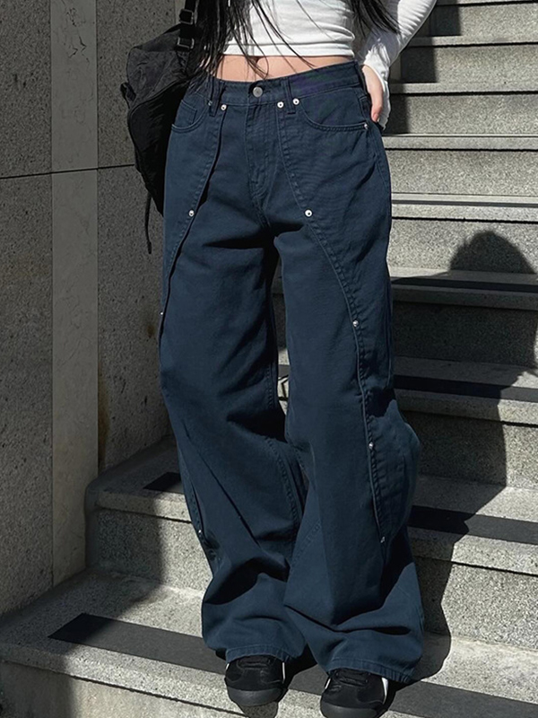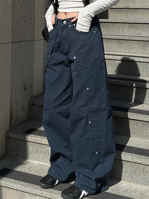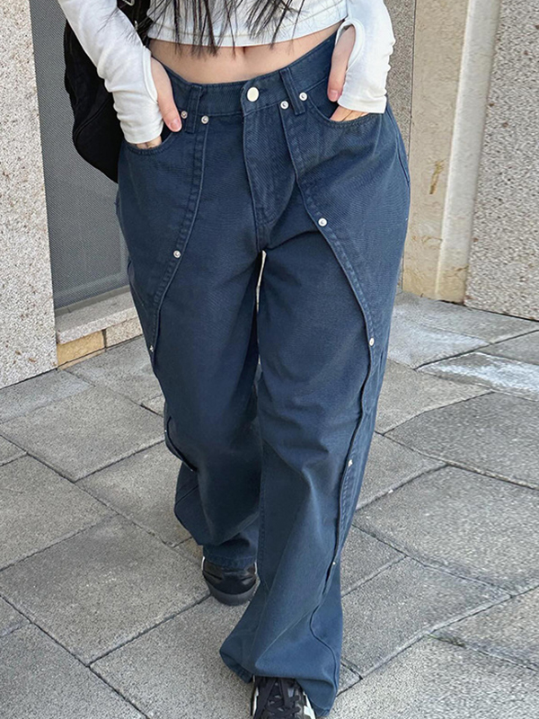 The Rivet Design Is Irregular And Loose Cargo Jeans