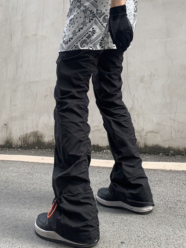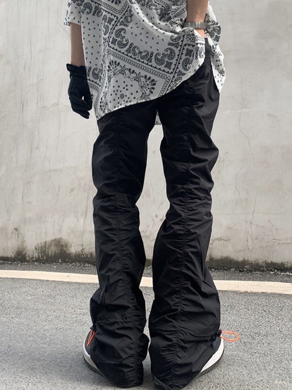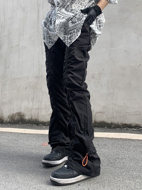 Description: These chic city boy cargo pants cut to a slightly ankle-flare silhouette, features drawstring toggle detail along the leg, with functional pockets and fully ruched design.