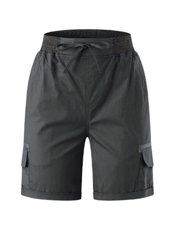 Solid Elastic Waist Multi Pocket Drawstring Shorts