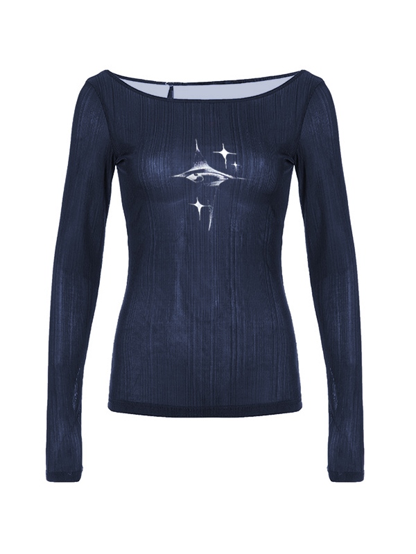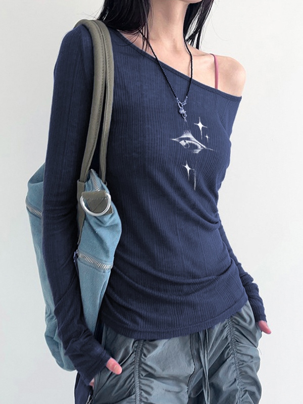 Be the first to review “Vintage Star Print Off Shoulder Long Sleeve Knit”
