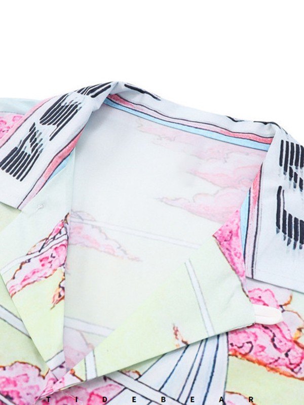 Men’s Vintage Printed Short Sleeve Button Down Shirt