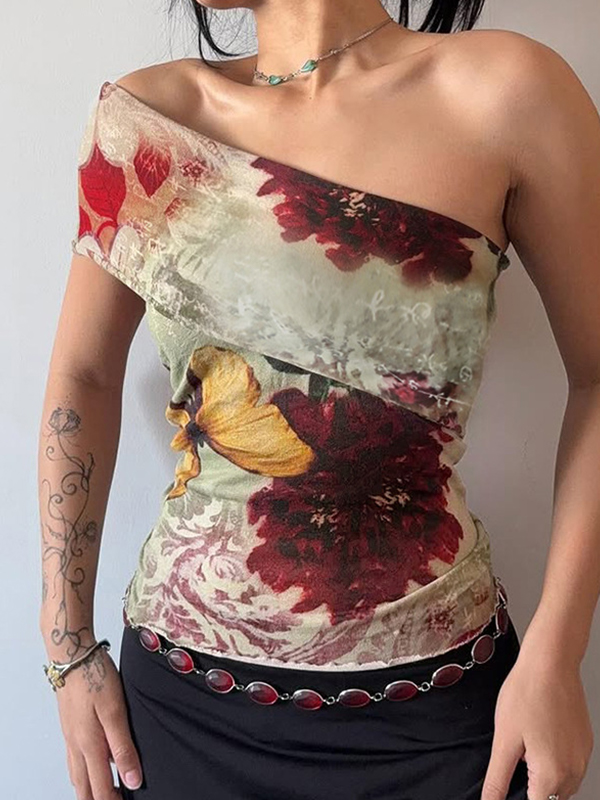 Be the first to review “One Shoulder Vintage Print Tank Top”