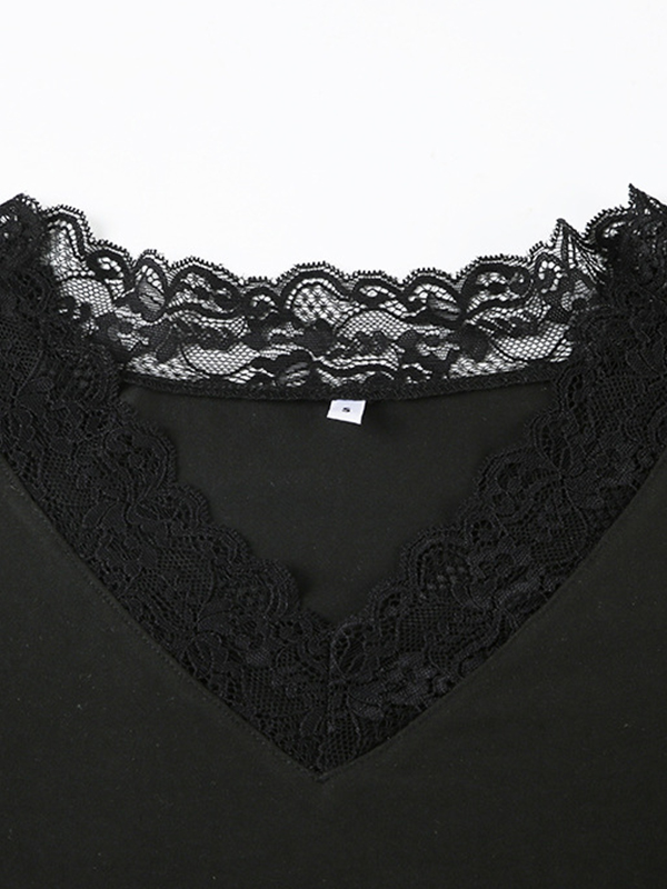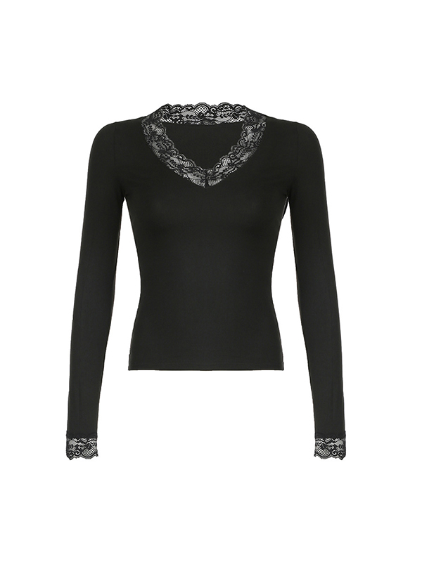 V Lace Stitching Long Sleeve Tee
