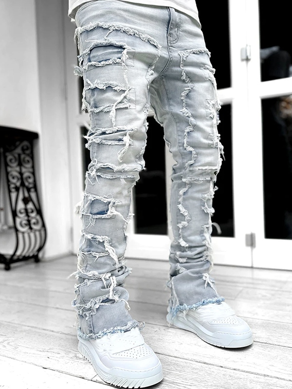 Men’s Light Blue Wash Raw Trim Slim Jeans