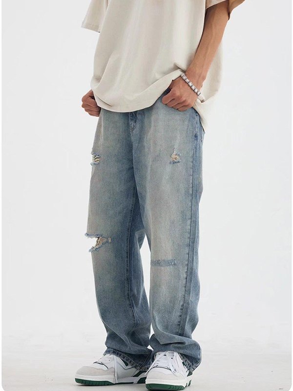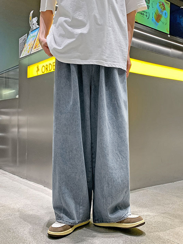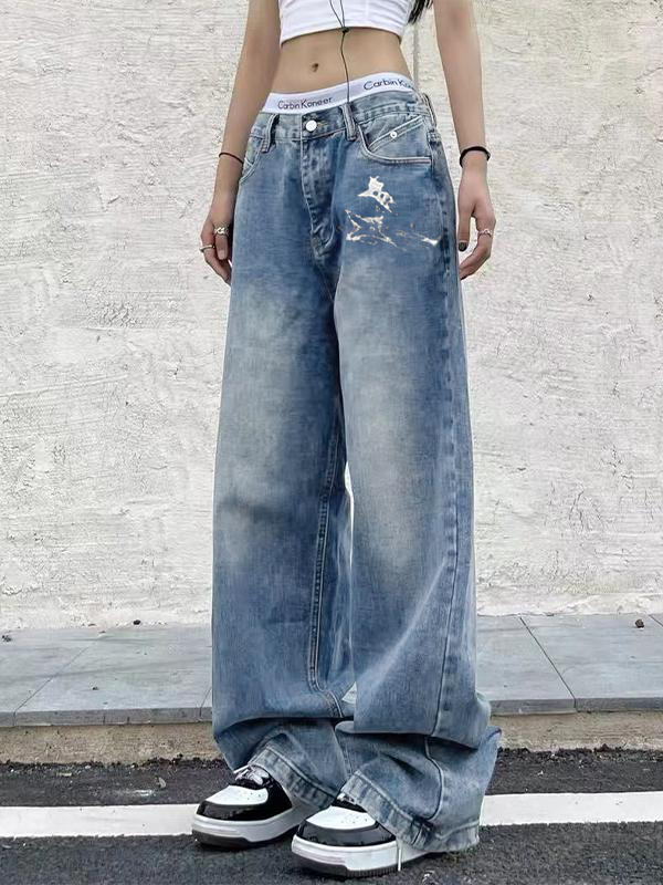 Washed baggy high waist straight mopping jeans