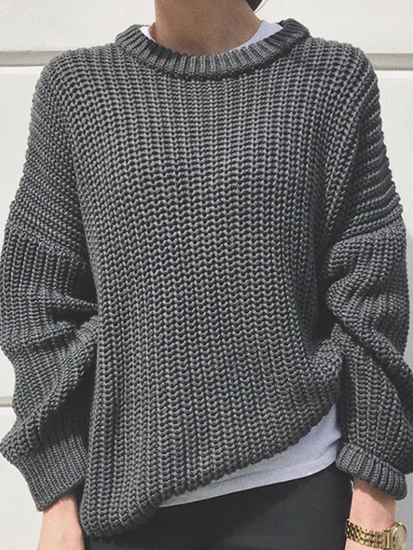 Solid Crew Neck Knit Sweater